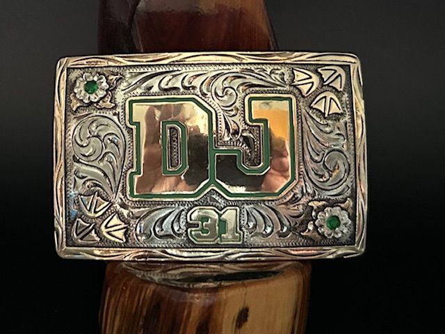 Outlaw Saddles and Silver offers premium custom trophy buckles, handcrafted with meticulous attention to detail. Each buckle is made in the USA using top-quality materials, ensuring durability and a striking design. Whether commemorating a special event, achievement, or victory, our custom buckles can be personalized to reflect your unique style and needs. Our skilled artisans bring years of experience to every piece, creating buckles that are not just accessories but cherished symbols of accomplishment and craftsmanship.